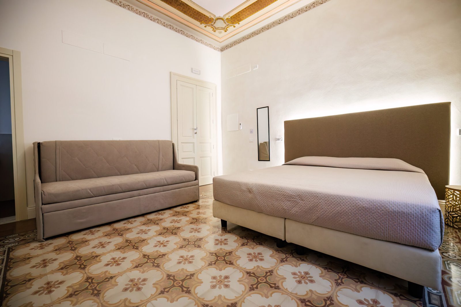 Accogliente e funzionale, questa camera è dotata di un letto matrimoniale King size e un comodo divano letto, ideale per ospitare fino a 4 persone senza rinunciare allo spazio.